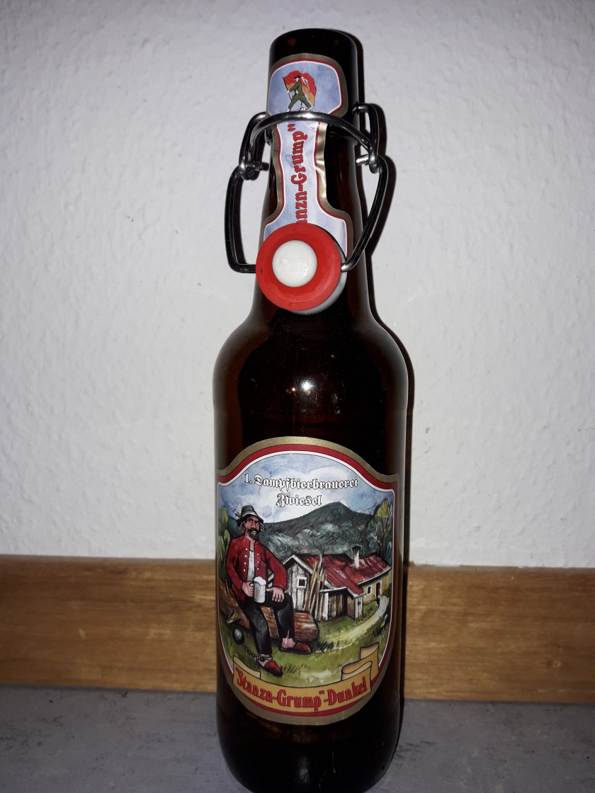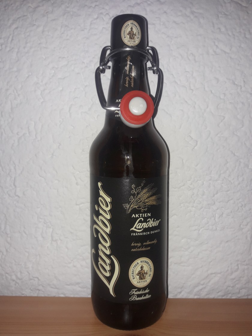 Einen Alkoholgehalt von schlanken 4,9% bringt das nächste Testbier mit. Es handelt sich um das Schwarbier die Kulmbacher Kultmarke Mönchshof. Diese von der Kulmbacher Brauerei produzierte Bierspezialität in der klassischen Bügelflasche fließt nun zur Verkostung in mein Glas.