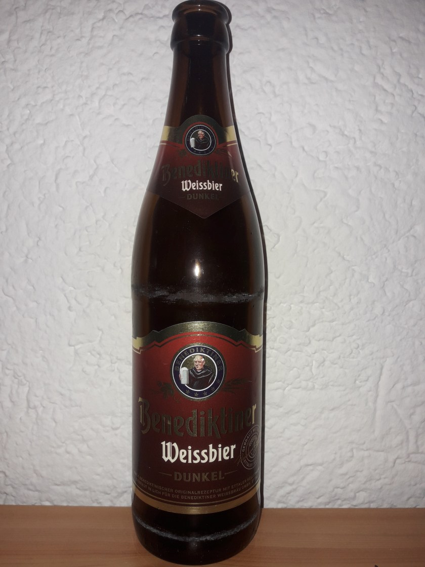 Von der Weissbiermarke Benediktiner, die im Auftrag der Ettaler Klosterbrauerei bei Licher in Hessen gebraut wird, habe ich heute die dunkle Version ihres Weissbieres im Test. Diese kommt auf einen Alkoholgehalt von 5,4%.