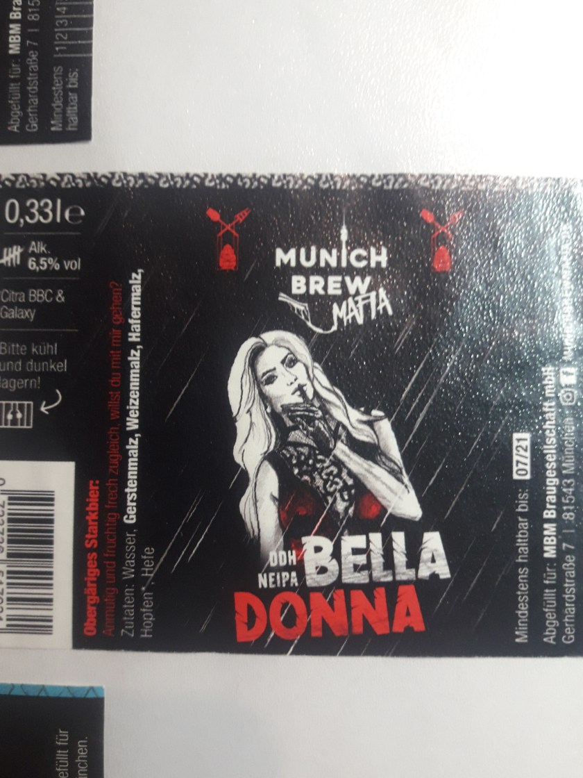 Mein nächster Biertest ist ein Double Dry Hopped New England IPA der Munich Brew Mafia namens Bella Donna. Der Alkoholgehalt liegt bei 6,5%.