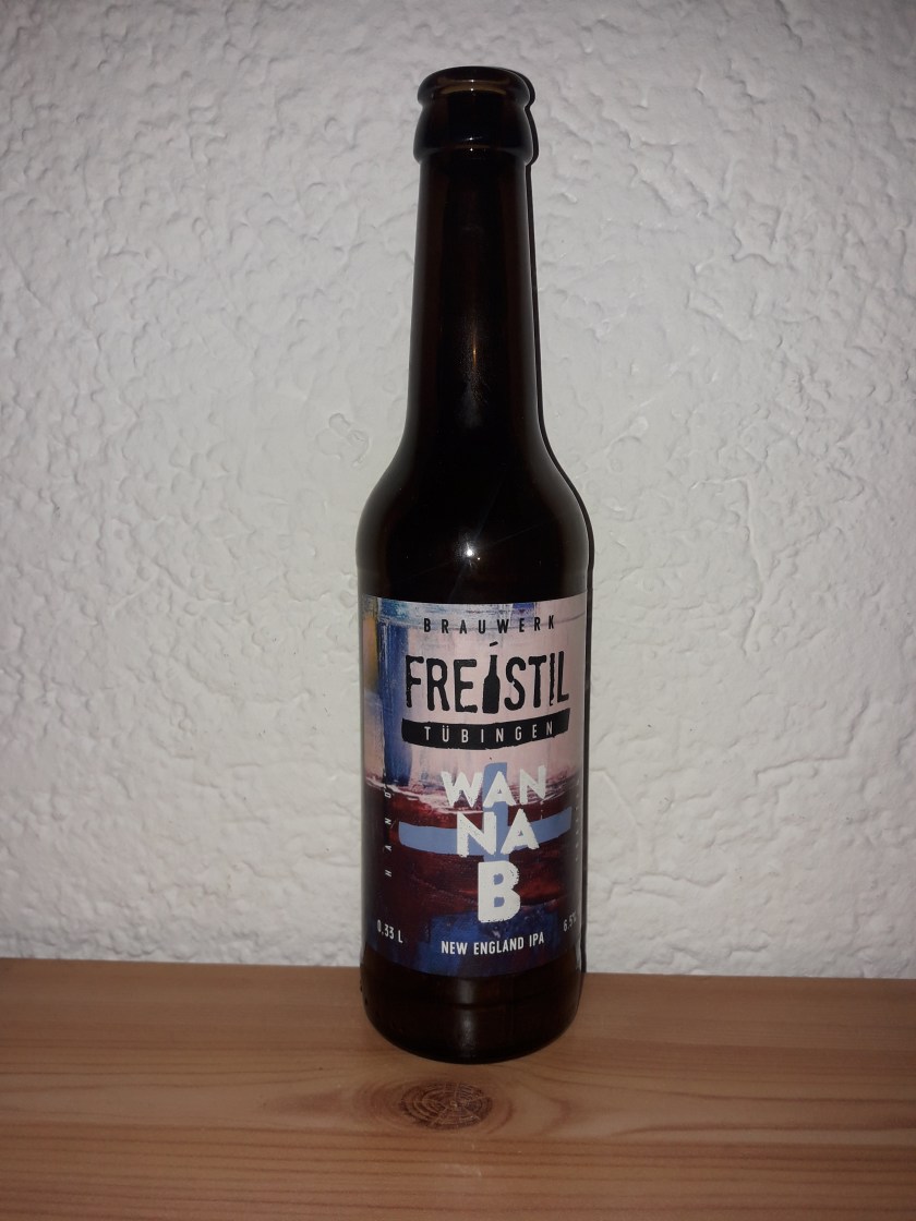Double Dry Hopped und mit etwas Haferflocken eingebraut ist das Wanna B des Brauwerk Freistil aus Tübingen stilistisch ein New England India Pale Ale. Der Alkoholgehalt liegt bei 6,5%.