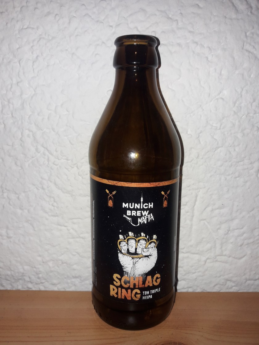 Bei den Namen ihrer Biere spielt die Munich Brew Mafia gerne mit Begriffen die im Umfeld des organisierten Verbrechens angesiedelt sind. Dies ist auch bei meinem nächsten Bier der fall, das nach einer gerne unter Gangstern benutzten Waffe benannt ist, dem Schlagring. Stilistisch ist es ein Triple IPA und mit 10% Alkohol hat es auch ordentlich Bums. Wenn man da nicht aufpasst trifft einen wohl wirklich der Schlag.