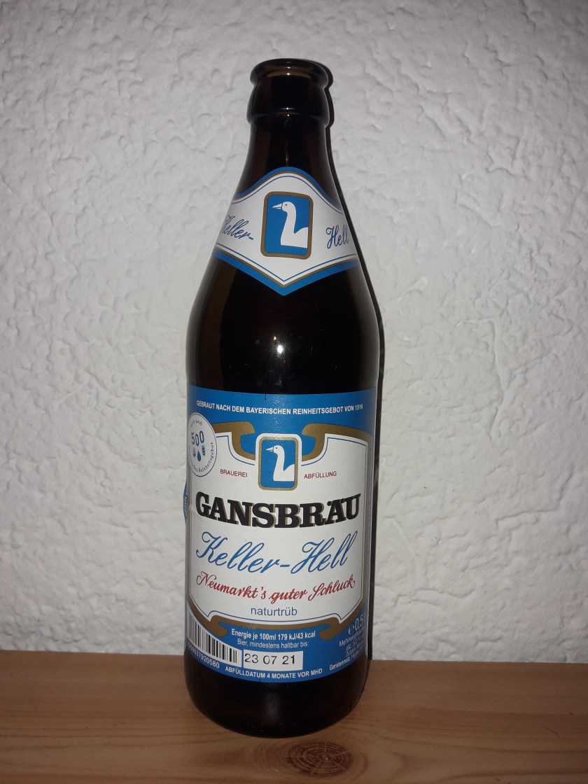 Ein Helles, aber unfiltriert. Das ist das Keller Hell der Gansbräu aus Neumarkt in der Oberpfalz. Wie es schmeckt möchte ich nun im folgenden Test ergründen. Der Alkoholgehalt liegt bei 5%.