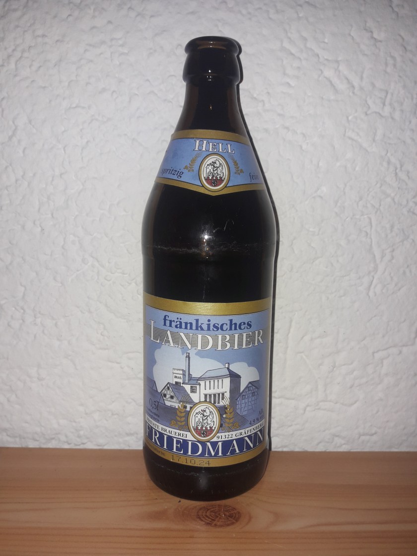 Im nächsten Biertest kann ich wieder eine Brauerei vorstellen, von der bisher im Blog noch kein Bier verkostet wurde. Die Rede ist von der Brauerei Friedmann aus dem mittelfränkischen Gräfenberg. Diese befindet sich auch am 5 Seidla Steig, einem Bierwanderweg rund um die Stadt Gräfenberg, der an allen 5 in oder um Gräfenberg liegenden Brauereien vorbeiführt. Brauerei und Wirtschaft Friedmann finden sich zentral in Gräfenbergs Ortsmitte in der Bayreuther Straße. Gegründet wurde die Brauerei 1875 und wird heute von Barbara Friedmann-Merkel und Sigi Friedmann in der vierten Generation geführt. Aus dem Sortiment verkoste ich heute das Helle fränkische Landbier mit einem Alkoholgehalt von 4,9%.