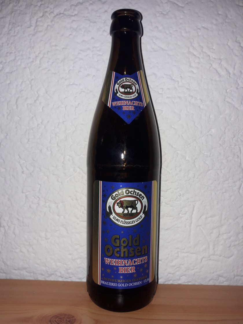Auch wenn dieses Jahr vergleichsweise wenig darauf hindeutet so rückt Weihnachten doch immer näher. In fast einer Woche ist es so weit und das Fest der Liebe steht wieder vor der Tür. Damit das auch gelingt bedarf es dem richtigen Getränk, nämlich einem Weihnachtsbier. Ich werde heute nun wieder eines dieser Biere verkosten, nämlich jenes der Brauerei Gold Ochsen aus Ulm. Deren Version des Festtagsklassikers hat einen Alkoholgehalt von 5,6%.