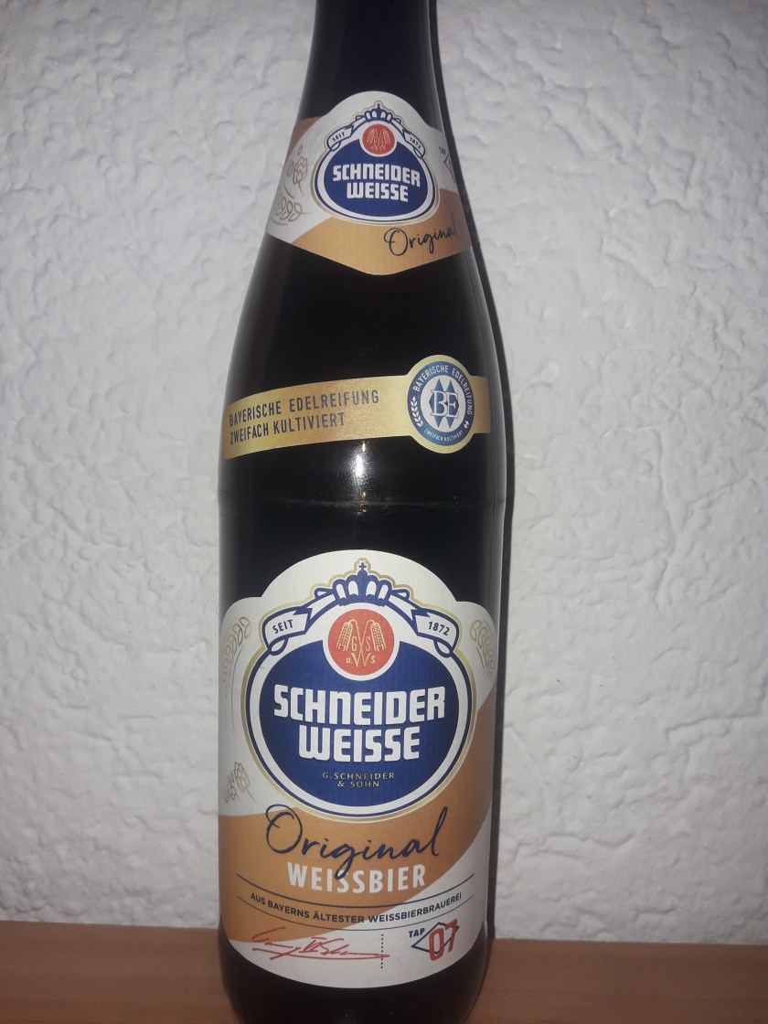Das Original bernsteinfarbene Weissbier aus dem Hause Schneider, die für ihre Weissen auf der ganzen Welt geschätzt werden, ist nun als nächstes Testbier an der Reihe. Das Bier geht zurück auf eine Rezeptur von Georg Schneider dem 1. und wird angeblich unverändert seit dem Jahre 1872 nach dieser gebraut. Der Alkoholgehalt liegt bei 5,4%.